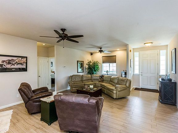 Immaculate 3/2 with a private master, open floor plan, and fantastic views. Incredible attention to detail in both the construction and care of this home. Home was designed with energy efficiency in mind, with 2x6 construction, and roofing material designed to reflect heat. The rear patio is very large, and has amazing views looking towards the valley and the sunsets. Large master suite, with separate his and her closets. The kitchen has granite counters, stainless appliances, and a breakfast bar. Beautiful tile floors in the living area, while the bedrooms offer lush carpeting, top down/bottom up shades, and ceiling fans. Perimeter of property is fenced, and there is a separate pasture with sprinklers, and tack room with a horse shelter, and an arena. This one is sure to impress!