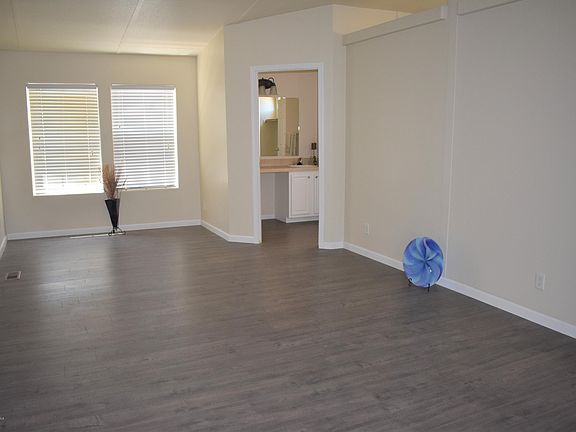 Affordable, updated 2005 manufactured home. This 2x6 built home is situated on a large corner lot offering a circular drive with plenty of parking. The home has been painted inside and out, new laminate flooring through out, new seamless gutters, uncovered patio out front and back, and a brand new roof. Enter this home to find a large great room, dining area, kitchen, breakfast nook, laundry room AND there are even 3 bedrooms and 3 bathrooms. The Master Bedroom even offers his and hers bathrooms!
