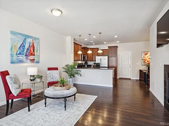 Well maintained Boyd Ponds townhome with attached 2 car garage! Cute covered front patio faces east - perfect for viewing stunning Colorado sunrises, or relaxing and staying cool on warm summer evenings! Luxury vinyl plank flooring and high ceilings throughout the main level! The living room with gas fireplace is drenched with natural sunlight! The kitchen is open to the living room, and features granite countertops, abundant 42-inch cabinets with crown molding, and all stainless steel appliances! A large peninsula is perfect for extra seating, plus there's a more formal dining area right off the kitchen, as well! A handy powder bath completes the main level! Upstairs is a generously sized master suite with a private bath featuring double vanities, private water closet, and a large walk-in closet! The two secondary bedrooms share a full hall bath, and the laundry room is conveniently located on the upper level! New water heater installed Oct 2023! Great location with plenty of restaurants and shopping close by, and West Woods Golf Club and the foothills just minutes away!