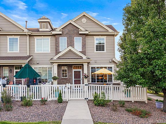If you’re looking to enjoy Colorado living with a low-maintenance home, this fabulous two-story, end-unit townhome is perfect for you! Situated on a premium lot, you'll love the private oversized, fenced-in patio overlooking the pond and fountains. The inviting, open floor plan welcomes you into the stunning home which is bursting with natural light. The living room features a cozy gas fireplace with stone surround and built-in media storage. The kitchen boasts cherry-finish cabinets, granite countertops, and a large peninsula offering counter seating in addition to the adjacent dining area. This unit features two bedroom suites and the convenience of a main-level powder room. The primary bedroom showcases mountain views, an ensuite bath with dual vanities, and a large walk-in closet with an incredible California Closet System. The laundry room is thoughtfully located between the bedrooms. Excellent shopping and dining nearby plus easy access to Golden, Boulder, and Denver. Welcome home!