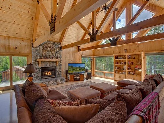 Lovely high end mountain home in the prestigious Wolf Estates on the West End of Donner Lake. This gem offers an open, spacious floor plan with beautiful exposed truss construction. Resting on a level lot with a two car garage and two stories of south facing windows and decks, this luxurious home invites you to kick off your sandals or snow boots and unwind! Downstairs master suite includes a gas insert stove and sliding door access to the hot tub. Your premier relaxation station awaits!