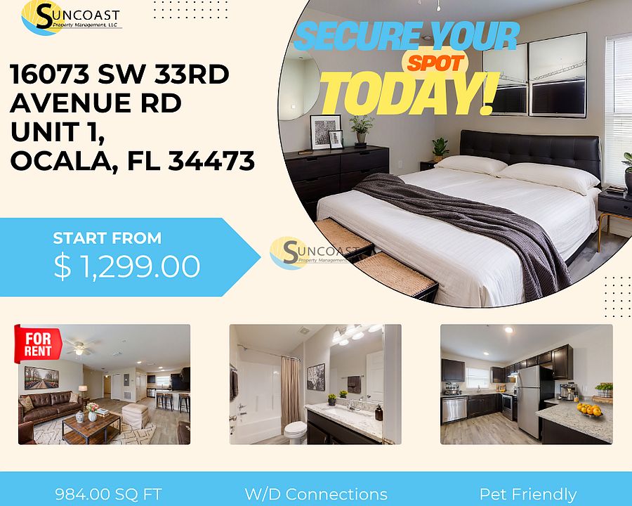Waived application fee until end of the week! Enjoy easy living in this quiet and refreshing brand new 2BD/2BA home in Ocala! This home features a spacious kitchen with granite counter-tops with a lots of wooden cabinets, and a cute breakfast bar! Pet-friendly with breed approval and non-refundable fee. Apply online today! Photos are for illustration purposes only and some details may differ! *All SunCoast Property Management residents are enrolled in the Resident Benefits Package (RBP) for $75.00/month which includes renters insurance, HVAC air filter delivery (for applicable properties), credit building to help boost your credit score with timely rent payments, $1M Identity Protection, move-in concierge service making utility connection and home service setup a breeze during your move-in, our best-in-class resident rewards program, and much more! More details upon application. Suncoast Property Management does require tenants to carry renters insurance with Suncoast Property Management listed as additionally insured. Proof of renters insurance must be provided prior to the tenants scheduled move-in.