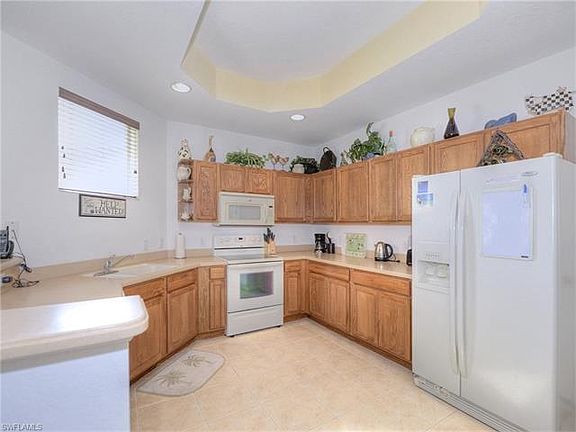 FURNISHED AND TURNKEY 3 bedroom, 2-1/2 bath CORNER unit with 2-car GARAGE. This light and bright unit is the largest floorplan available at Sail Harbour and features lots of storage and a screened lanai open to green space. Beautiful upgrades throughout including 42-inch maple cabinets and tray ceilings. Grand double-door entry to the master bedroom with sitting area and oversized walk-in closet. Enjoy the en-suite bath with double vanities, separate walk-in shower and soaking tub. There is a walk-in closet in one of the nicely sized guest rooms as well. New AC in 2016. The community of Sail Harbour offers a 24-hour guarded gate and a tropical lakeside community pool. Low HOA fees of $265 per month include basic cable, high-speed internet, local phone, lawn maintenance, mulch, outdoor light, alarm service, gate and amenities. Desired area centrally located close to Health Park, beaches, shopping restaurants and so much more.