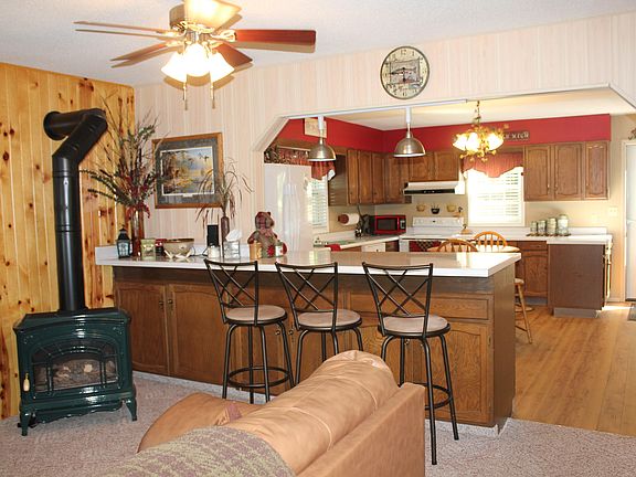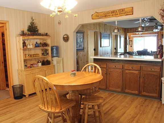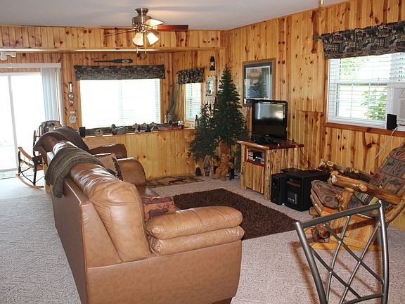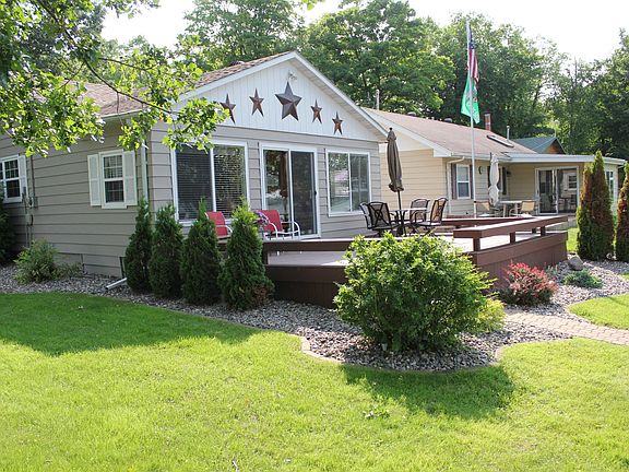 Adorable cabin that is move-in ready with lots of windows for a spectacular view of the lake.It features pine interior, gas fireplace, newer windows, steel siding, sunporch across the front. Front & back decks. Dock included!