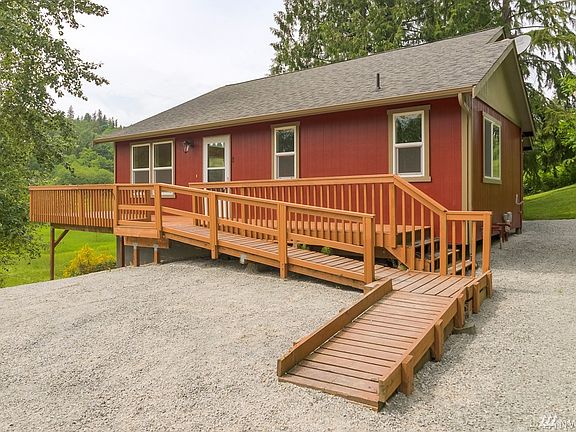 Beautiful updated home near Big Lake on almost an acre! Spacious open floor plan w/ vaulted ceilings. Main floor living w/ 2 bedrooms & 1 full bath, kitchen w/ pantry & maple cabinets that open to the living room makes this space ideal for entertaining. Fully finished basement w/ exterior entrance, bedroom, full bath, potential 2nd kitchen & utility room. Relax on the wrap around deck that overlooks a peaceful valley meadow. Large detached/garage w/ plenty of space for storage, boat/RV parking.