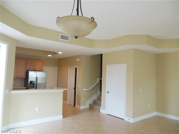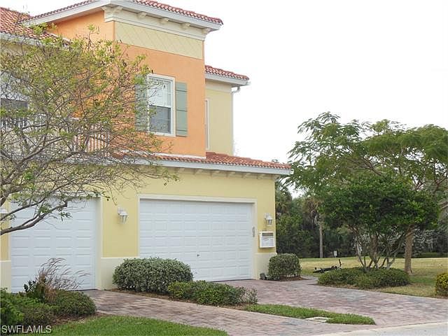 This spacious town home is on the end with wide side yard w/ lots of Poinciana trees. One of a few large end units with a 2 car garage! A beautifully Mediterranean style town home. 3 bdrms 2.5 baths, all tile downstairs BRAND NEW repaint ceiling to baseboards. --even garage + patio floor. BRAND NEW SS appliances in kitchen brand new faucets thru-out, . BRAND NEW Ceiling fans in every room. Featuring over 1900 square feet, screen enclosed lanai, BRAND NEW efficiency A/C, new stainless appliances, walk-in pantry,, tile downstairs and BRAND NEW carpeting in rest of the town home. Even the garage door opener is BRAND NEW. Upstairs laundry features BRAND NEW washer and dryer--close to the bedrooms. Large master suite with separate seating area, large soaking tub, separate shower, dual sink and large walk-in closet. This gated w/ 24/7 guard, community is located in the desirable SW Fort Myers area just minutes to beaches of Fort Myers, Sanibel, Captiva Islands, and other area conveniences. Easy lifestyle with lawn & land maintenance, pest control, internet, cable, community pool lakeside included in the HOA fees.