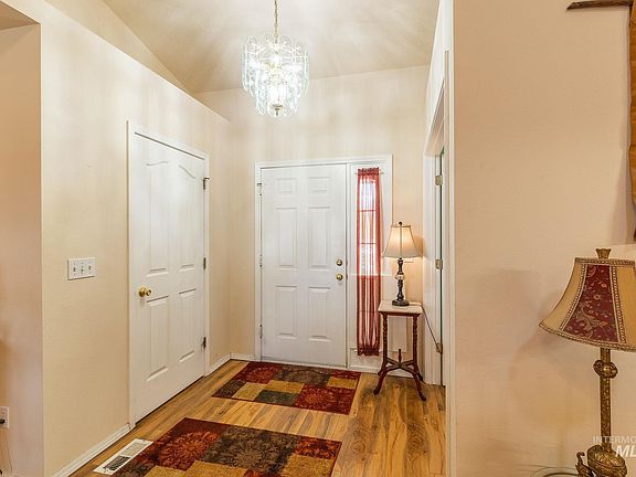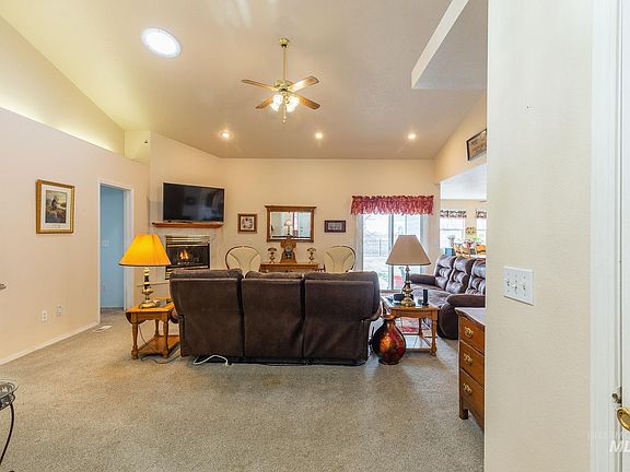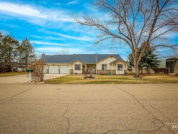 Phenomenal sunsets and views of the Owyhee Mountains. Just shy of an acre this great home backs up to a farm field. No HOA or CCR's. Single level home with a 878 sq ft garage, 3 car w/a workshop 240 amp plug for welding in the garage. There is a generator that is tied into the gas line that will keep the furnace, fridge and freezer running incase of a power outage. Spacious great room with vaulted ceilings and a gas fireplace. There is a den with french doors right off the entrance, it has a closet so it could be the 5th bedroom. New carpet in the main areas 2 years ago. Laminate flooring the kitchen and dining area. Corian countertops in the kitchen with a gas cooktop, built in microwave, built in oven, dishwasher (new 2022), pantry and breakfast bar. Master suite on one side of the home. 3 additional bedrooms and a hall bathroom on the other side of the home. Covered back patio, fully fenced yard with wrought iron fencing, full sprinklers. 1/2 bath off the laundry room and the door to the garage.