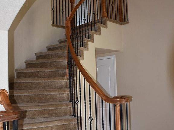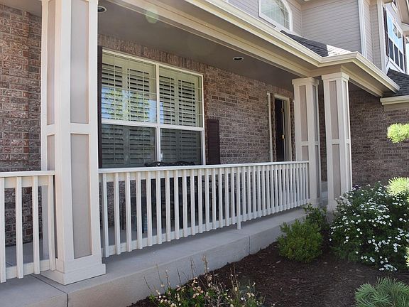 Great style and quality with plenty of room for everyone. Large open floor plan starts with sweeping curved staircase and formal living room and dining room accented with curved archways and crown molding. Notice the stylish tray ceiling in the connected kitchen, eat-in nook and family room areas. The spacious kitchen has an abundance of raised 42" maple cabinets, Zodiaq quartz counters, instant hot water dispenser, and custom tile backsplash. A tile bordered two-sided gas fireplace connects the main level office and family room. Expansive master suite with Pikes Peak views and French Doors into a 5 piece bath with Jacuzzi tub and large walk-in closet adorned with cedar inlay around the perimeter. This home has 3 additional bedrooms upstairs, along with a full finished basement that includes a ¾ bath and oversized bedroom. Total of 4 walk-in closets provide ample storage. Some final touches of elegance and enjoyment include decorative niches, popout windows Plantation shutters