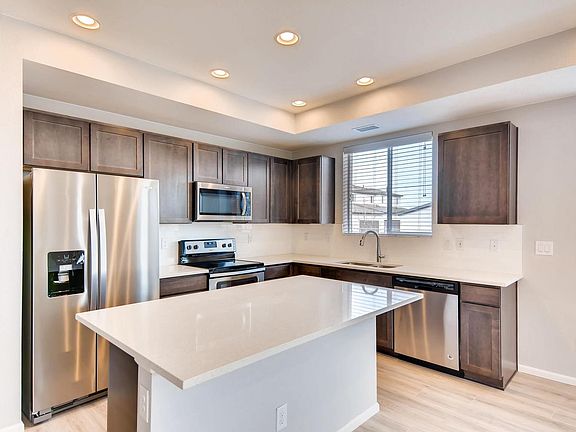 This is an incredible wide open plan with a large kitchen/nook/great room area, granite kitchen countertops and laminate floors throughout the downstairs, second floor laundry room, spacious master bedroom. This home includes washer,dryer, refrigerator and window coverings. Just bring your clothes and furniture and enjoy all the amenities at Avion, the club house, pool, dog park , pollinator park and a future Denver Public Park!