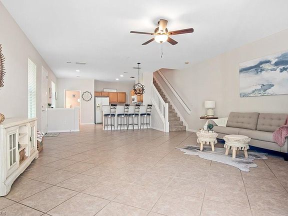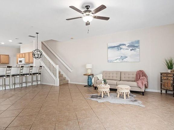 Welcome to this move in ready, freshly painted 2 stories, 3 bedroom, 2 ½ bath, 2 car garage townhome located in north Naples at Milano. See yourself pulling into your private, newly painted garage with epoxy floors. The home gives you the option to enter through your private two car garage and into the open and spacious kitchen or through the front door and into your open living room. The high-volume ceilings in the living room offer a luxurious feel overlooking a serene view from your enclosed patio. Walk up the stairs to find the 3 bedrooms, 2 baths and the washer and dryer for added convenience while still having a half bath downstairs for guest. Enjoy this pet friendly community with low fees, pet friendly, basketball court, tennis courts, sidewalks, dog park, and BBQ areas. Located minutes to I-75, Mercato, Coconut Point, the beach, Seed 2 Table, and many other popular shopping and fine dining.