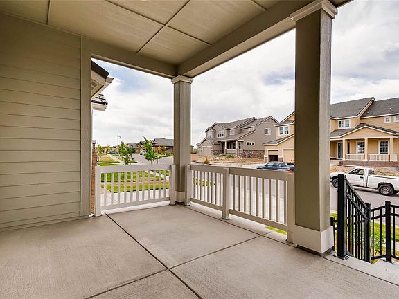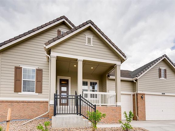 New home! Ready now! Popular ranch plan with large gourmet kitchen open to great room. 12' great room with cozy fireplace. Covered patio with exterior fireplace perfect for enjoying your fully fenced landscaped yard during the gorgeous Colorado evenings. Large master suite opens to 5 pc master bathroom with split vanities and soaking tub. Both secondary bedrooms have their own bathroom, plus separate powder bath. Beautiful designer finishes throughout the home with upgraded cabinets, countertops, tile, hardwoods, carpet, interior paint and more. A real must see! Energy Star Certified and HERS rated. Thunder Vista elementary and middle school opening August 2018!