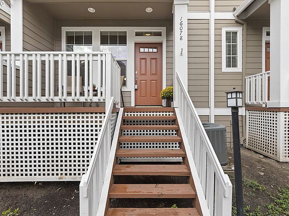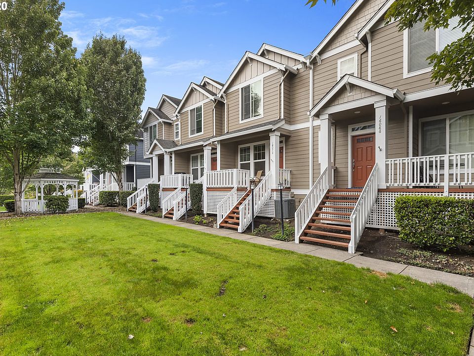 LOCATION! Near Merlo Transit station, New Seasons, Cedar Hills Crossing w/shops and restaurants, Nike, Intel / high tech! Two bedroom suites. Updated with new laminate flooring on main, new/newer stainless kitchen appliances, new paint, washer/dryer and free standing refrigerator included. High ceilings and great light. Front porch and beautiful courtyard. Attached garage. Move-in ready!