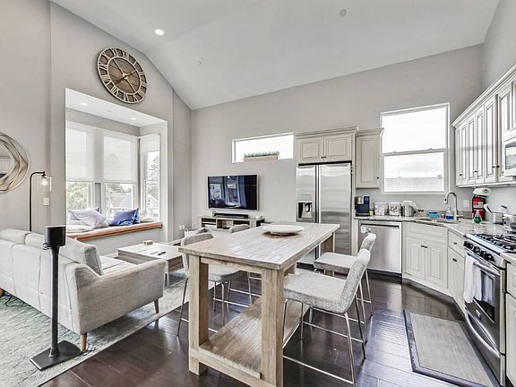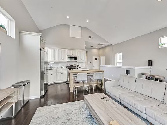 This beautifully updated top-floor flat features high ceilings, newly refinished hardwood floors, and abundant natural light throughout. The open-concept living area is perfect for entertaining or relaxing, with designer furnishings, a UHD TV, and premium Sonos sound system. The modern kitchen boasts high-end stainless steel appliances, quartz countertops, and ample cabinet space ideal for home cooking. The primary suite offers a spacious walk-in closet and a private en suite bathroom with a walk-in shower. Additional amenities include in-unit laundry, secure gated entry, and a convenient location near BART, freeways, shopping, and dining in both Emeryville and Downtown Oakland.