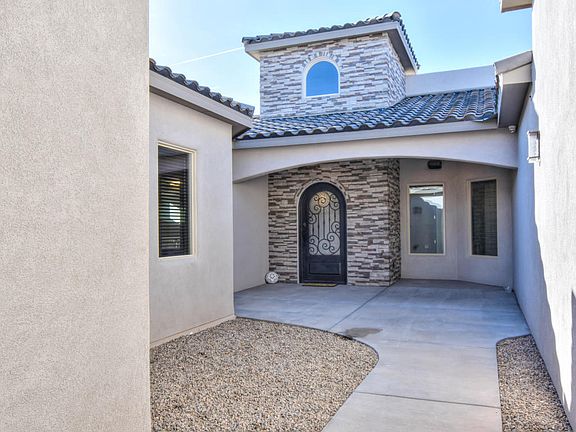 Exquisite Crescent custom home nestled into the heart of Rio Rancho on a large 1/2 acre property! Home features 3,052 sf with 5 bedrooms, 2.5 bathrooms, a workshop and RV garage! Enter through the private courtyard entry. Great open floorplan. Elegant kitchen w/ custom cabinetry, quartz countertops, built-in oven/microwave, gas cooktop, farm sink, sub zero fridge, 2 Islands, backsplash and large pantry. Spacious living area with custom gas fireplace. Master retreat w/ spa-like bath. Bath hosts dual sinks, vanity area, a free standing tub, walk-in shower, walk-in closet w/ built-in shelving. Second den perfect for a home office! Large covered patio overlooking the huge backyard. 25 X 9 Workshop and a RV garage leaves plenty of space to store all of your toys!