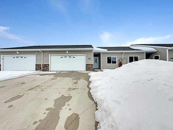 Move-in ready townhome located in SE Minot! With 2 bedrooms, 2 baths, and a two stall attached garage, this is one you don't want to miss! The whole home recently received all NEW carpet and fresh paint throughout! Upon entering, you're greeted with the front hallway leading through to the whole home. Off the front entry, you will find the first bedroom and full main bath. Continuing on into the home, you will love the open plan layout - with your kitchen, dining, and living spaces all flowing seamlessly together. The kitchen boasts ample cabinetry, stainless steel appliances (brand new stove!), and an island. Your large, bright living room can accommodate multiple furniture arrangements. The dining space provides a sliding door out to your fenced in backyard with oversized 10 x 35 concrete patio - WOW!! The exterior also has in ground sprinklers! Heading back inside, you will find the master retreat which is very spacious, and includes its own 3/4 private bath and walk-in closet! The interior is complete with laundry room including cabinets and the washer/dryer stay with the home! The attached two stall garage is insulated and sheetrocked. There is truly nothing that needs to be done besides move in! Call your agent today for a private showing. Agent related to seller.