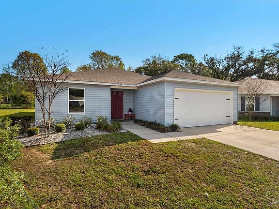Assumable VA loan available. Welcome to Kaylee’s Landing, a delightful community tucked away off 9 Mile Rd. and Bowman Ave! Experience the best of both worlds with top-rated schools, convenient shopping, delicious dining, and easy access to I-10 and Hwy 29, all just minutes from your door. This spacious 4 bedroom 2 bath home features a bright and inviting Great Room, perfect for family gatherings and entertaining. The kitchen, open to the Dining area, boasts sleek black and stainless electric appliances. The dining area overlooks the sliding door to the paver patio with views of the beautiful backyard oasis. The oversized Owner’s Suite offers a luxurious retreat with a large Walk-In Closet and a Master Bath designed for ultimate relaxation, complete with a walk-in shower and vanity. The 3 additional bedrooms are on the other side creating a split floor plan. The laundry room is very spacious and leads out to your dual car garage. Nestled on a peaceful cul-de-sac, this home provides both privacy and serenity. One of the largest backyards on the street that backs up to a beautiful green space with trees. Come see why this is the perfect place to call home!