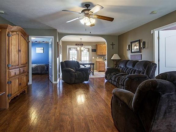 Great home with 4 bedrooms, 2 baths and 2 living areas. Spread out and enjoy almost 1800 sf of living all on ONE level! Relax in the living room while the kids play in the separate den area or come enjoy some time outside on the amazing covered deck overlooking the pool. Laminate hdwd and tile throughout. Kitchen appliances remain.