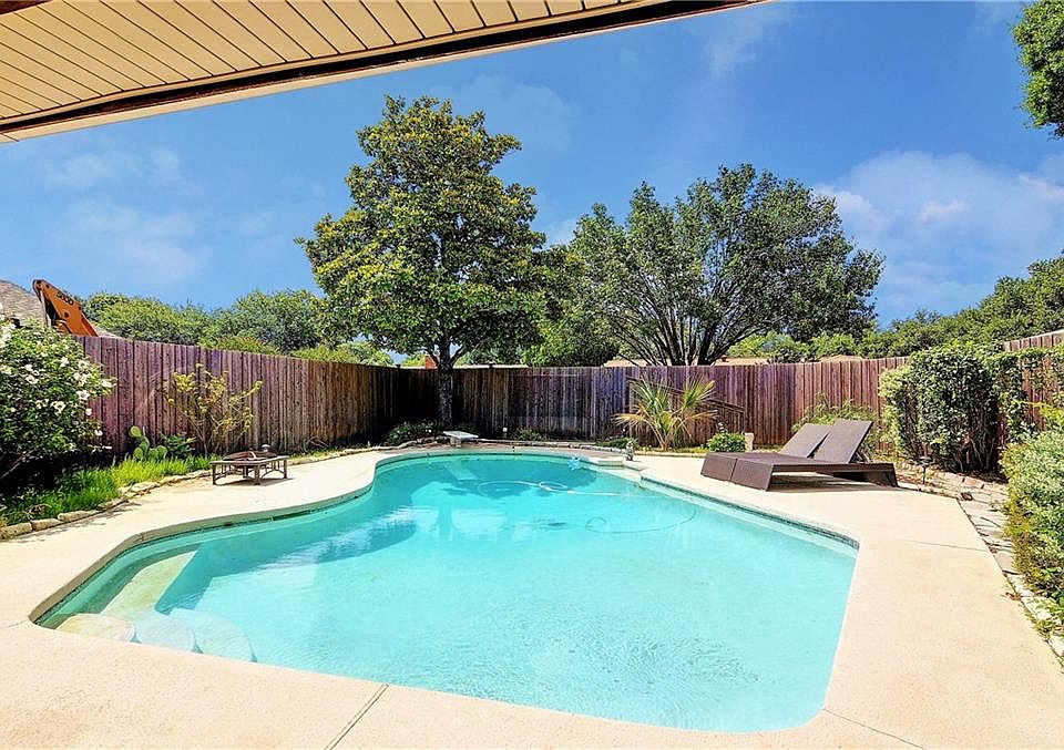 Enjoy a Texas summer with your own private POOL! Move-in Ready 3 bedroom home with inviting curb appeal that boasts formal Living & Dining Rooms as you enter the foyer. Family Room has floor-to-ceiling brick fireplace with raised hearth & additional serving bar for Dining Room & also the Family Room. Open floorplan between Family Room, casual dining area, breakfast bar & sun filled Kitchen. Plenty of room for a Bar-B-Q on covered patio around the hot tub or sparkling pool. Conveniently located with easy access to highways, shopping & entertainment. Roof replaced in 2017. Ready for your personal touch.