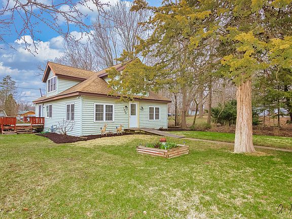 Perfectly remodeled 3 bedroom 2 full bath bungalow in the heart of Johnsburg. Property has been redone top to bottom. Quality craftsmanship throughout. First floor features large living room, spacious family room with cozy fireplace, dining room with sliders to deck and views of river. Bright and open kitchen with subway tile backsplash and all appliances stay! First floor laundry and updated full bath! 2nd floor features 3 spacious bedrooms and a brand new full bath. Master with WIC and view of river. Beautiful new flooring and lighting throughout. Fresh drywall and paint! Recessed lighting. New septic tanks, field hydro-jetted, new dist. box installed all in 2017. Kinetico water softener and reverse osmosis '16. Tons of storage. Nice quiet non through street close to the Chain O Lakes.