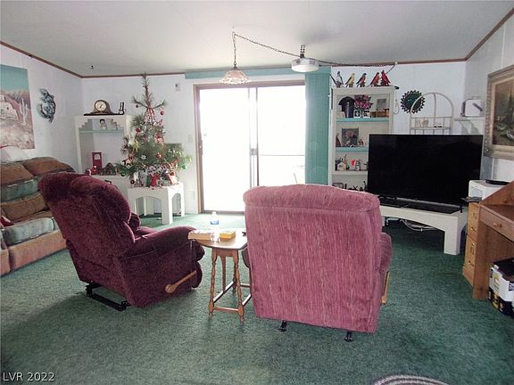 Located at end of cul-de-sac on a larger lot with mountain and city views. Exterior recently repainted, furniture included. 3 bedroom, 2 bath manufactured home with split floorplan. Kitchen has gas stove, refrigerator, and breakfast bar, open living room with glass sliders to back covered patio.1 car carport along side home, back partially fenced with block.