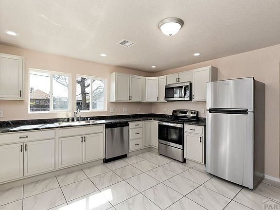 Gorgeous remodeled 5 bed, 2 bath spacious rancher boasts main level living and split bedroom design for privacy. Meticulous attention to detail throughout. Stunning concave ceilings in the living room. Kitchen is bright and cheery thanks to double windows. Ample cupboard space, corner pantry, stainless steel appliances and beautiful tile flooring. Updated: roof, furnace, AC unit, tankless water heater, electric service, sewer line, windows, flooring, appliances, and paint. Fully fenced yard with storage shed, room to add a lovely garden, or create whatever your heart desires. Located nearby Saint Mary Corwin and only minutes from shopping, restaurants and I- 25.