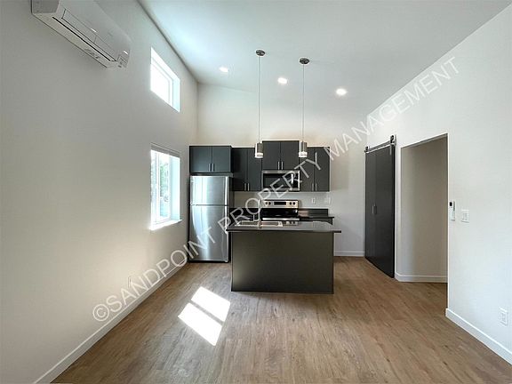 This Brand new 1 bedroom and 1 bath unit is located along Cedar Street and close to Traverse Park area, Sandpoint Library and downtown Sandpoint. New construction with vaulted ceilings, LVP flooring throughout, covered porch, quartz countertops, stainless steel appliances, under-cabinet lighting, washer/dryer, upgraded fixtures, AC, ERV system for fresh air and cadet heating. One dog less than 50 pounds accepted with additional pet rent of $45/month. Additional $140/month for water, sewer, and garage. This home is available mid-late January.