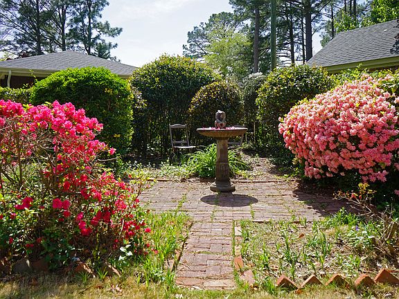 A bright and sunny 1950’s ranch nestled in one of Goldsboro’s oldest neighborhoods with walkable streets lined by full oaks, magnolias, pines and stately homes. This home is only a short walk away from Stoney Creek Park (with dog park and trails), Herman Park, Goldsboro Library, and area restaurants. The property features a healthy, landscaped garden with slate patio, zoysia grass, gardenias, azaleas, roses, dogwoods, crepe myrtles, and hydrangeas surrounded by a custom brick wall and an established hedge. It is an inviting and delightful space to enjoy with your morning coffee or host cook-outs with your new neighbors. The interior features bright and cozy spaces well lit by large windows throughout the home that look out onto the beautiful yard and neighborhood. Lovely original details include built-ins, plantation shutters, and wood paneling. The home stays comfortable through very efficient air-conditioning and natural gas heating, plus a natural gas fireplace to enjoy in the winter. Flooring in the kitchen, dining room and living area has been updated with new luxury vinyl. A “Jack and Jill” bathroom join two of the bedrooms, and the master bedroom includes a master bathroom and walk-in closet. There is ample storage space with closets galore, an attic that spans the entire length of the house, and an outdoor shed attached to the carport. This well-built home is an ideal sanctuary for families or couples in any stage of life.