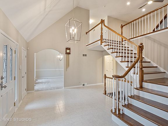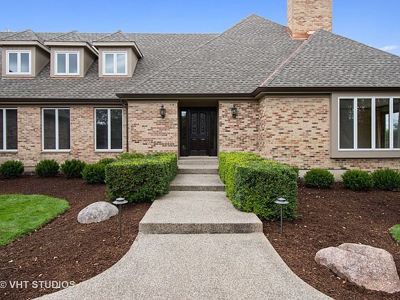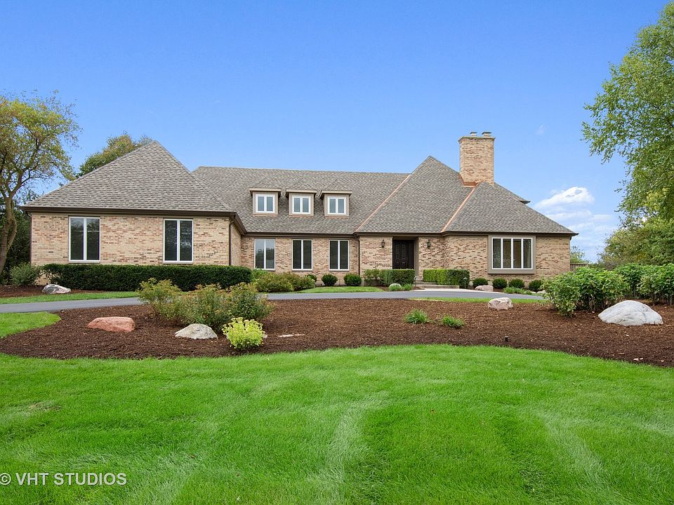 A beauty in Inverness Hills! This charming home is set on a lovely 1.1 acre lot and updated throughout! Wonderful open floor plan is drenched in sunlight with vaulted ceilings and over sized sliding doors! Soaring two-story foyer, living room with fireplace and sliders to expansive balcony and dining room with vaulted ceiling are just the beginning! Huge kitchen with new Kitchen Aid stainless steel appliances, white cabinetry, quartz counters, walk-in pantry and large eating area with sliders to deck and picturesque views of rear yard. 15-foot vaulted ceiling with beams welcomes you into the family room with wet bar, sliders to rear deck, fireplace and overlook from second floor loft. First floor master bedroom suite with luxury bath and sliders to balcony is your own private oasis. Office/5th bedroom with en suite bath & sliders to rear deck and laundry room complete the first level. Second floor offers three additional bedrooms and loft. The full finished walk-out lower level provides additional living and entertaining space with enormous rec room, wet bar, fireplace and full bath. Enjoy stunning views and privacy from the expansive deck or patio. See the list of updates including: newer roof & mechanicals. Located in award winning Fremd High School district, close to town, train and shopping!