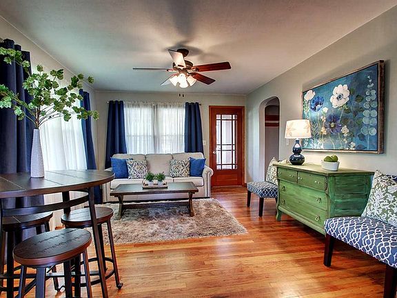 Perfect starter! Newer kitchen, flooring, drywall upstairs, fixtures, electric, some plumbing, newer bathroom, HVAC, windows and more. Beautiful hardwood floors on main level. Entry/sunroom not included in sq. ft. Partially fenced in yard. Lots of parking.