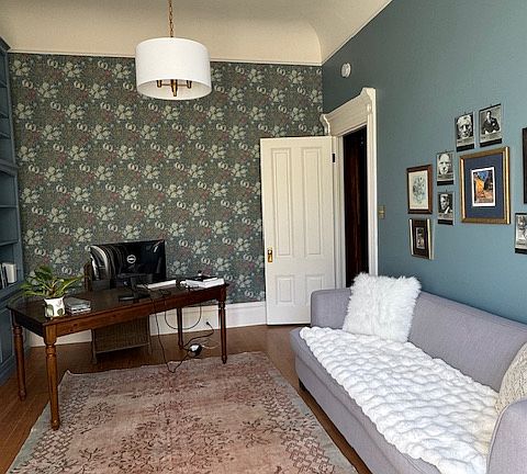 2 living rooms , formal dining room, kitchen with sitting bench overlooking brand new deck and garden. 2 open fireplaces.