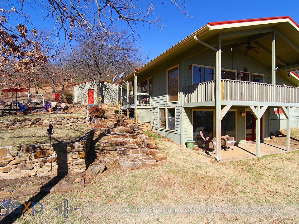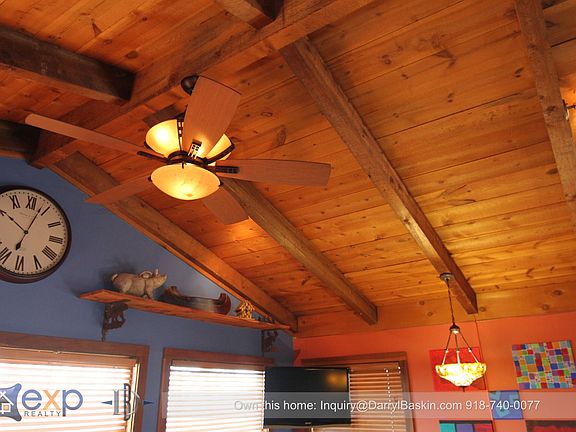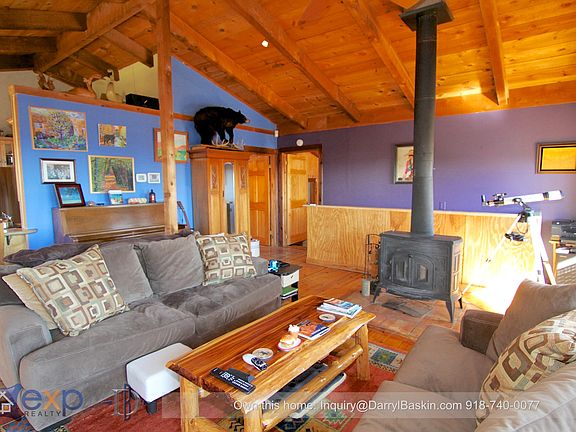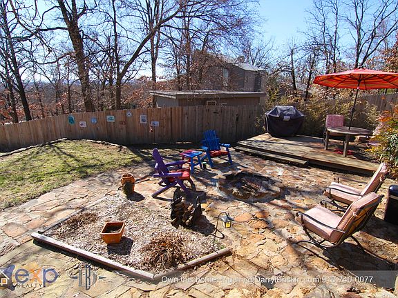 One of a kind hillside cabin retreat just a few minutes from Downtown Tulsa in the Osage hills. Downtown skyline views from Bedroom Balcony. Walkout basement could be bedroom. Granite kitchen, Artisan D cor. Gate at entrance. Firepit, Dog pen.