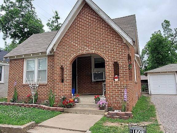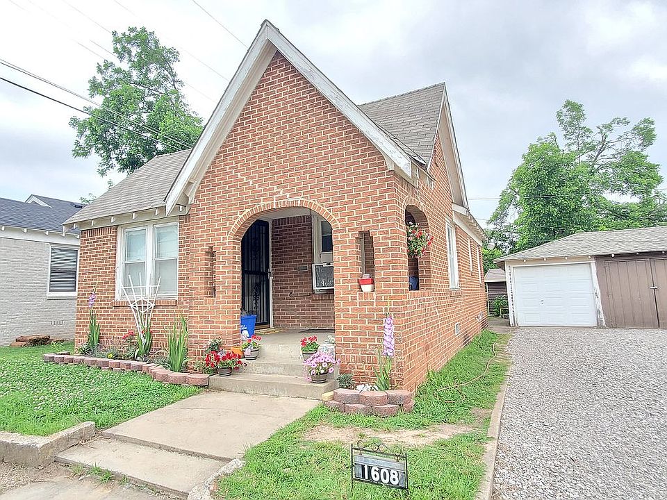Come home to this darling brick 2 bed/1 bath Tudor Revival, situated in the heart of NW OKC near the Plaza District! Close to highways for conveniently getting anywhere in the metro, this home features updates throughout, including recently updated plumbing (with pex pipes), all new paint, a remodeled bathroom, and all new waterproof vinyl siding on the back of the house. Kitchen features a breakfast nook and Midcentury Modern touches, including retro lighting fixtures and mixed metal cabinet pulls! All appliances stay with the home. Bonus flex room, complete with large closet, located off the living room could be used as a home office or dining room. Master bedroom on the back of the house has 2 large his-and-hers closets and storage galore, including a built-in desk, bookshelves, drawers, cabinets, and even record storage! Home also has a detached one-car garage as well as a recently re-graveled driveway. Garage has been recently re-shingled. Long-term neighbors on either side. This turn-key property is move-in ready. Inquire now, and enjoy sunsets on your cozy covered porch surrounded by all new landscaping and flowers in an up-and-coming OKC neighborhood! Cash/conventional only. Open house on Sunday, June 13, from 2-4. House will be available for private showings starting Monday, June 14.