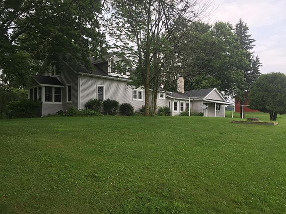 Lovely farm house nestled on a quiet 2 acre lot. This home has a nice, 2 stall attached garage, with a large mudroom access, equipped with laundry hook ups. Full bath on main floor with newer shower. Open kitchen leading out into separate dining room. Main level bedroom and a lovely nook/4 seasons room come off of the living room. Upstairs you'll find 2 nice sized bedrooms and Storage closets. Basement offers lots of shelving for additional storage.
