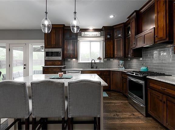 Open living room w/bay windows for extra light. Spectacular kitchen w/granite counter tops and large center island. Huge walk-in pantry. Gas range for gourmet meals. Wood floors in kitchen and dinning area. Beautiful owners suite with a spacious bathroom, corner jetted tub, generous walk-in tile shower, double vanity & large walk-in-closet. Each bedroom has access to a bathroom with one bedroom having it's own bath. Granite counter tops and tile floor. Laundry on second level & convenient to all bedrooms. New water efficient toilets. 24 x 14 covered patio w/extra electrical outlets. Overlook your beautiful wood fenced yard. 8x8 raised garden area, Irrigation system, Alarm system.