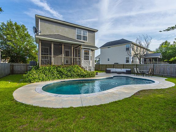 Well cared for home in quiet neighborhood. Great for families or retirees alike. The floor plan offers an eat in kitchen and a large living room with fireplace. Walking out the back door onto the screened porch and past is the saltwater pool. Bordered on one side by a patio area, this two year old pool is a great place to relax or entertain. The pool has a self cleaning system and underwater lights. The back yard is surrounded by a privacy fence and there is a wooded area directly behind it. Upstairs is a large master suite featuring a bathroom with dual vanities, tub, and separate shower. There is also a huge walk in closet. Also on the second floor are two bedrooms and a full bathroom. Close to Folly Beach and a short drive downtown. See supplement for improvements made by the seller. Improvements include new insulation and a vapor barrier in the crawl space, new dishwasher, new fans throughout (with remotes), new HVAC unit (in 2016), numerous light fixtures, and the swimming pool.