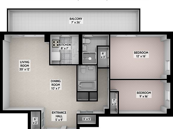 This 1252 square foot apartment home has 2 bedrooms and 2.0 bathrooms. This home is located at 1608 Ocean Pkwy APT 8B, Brooklyn, NY 11230.