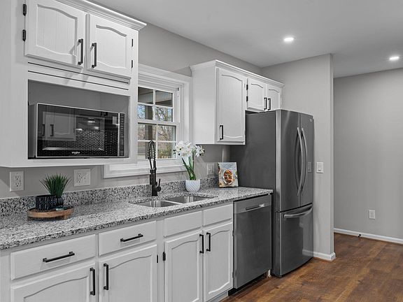 Nestled on a peaceful cul-de-sac, this charming, beautifully updated home features a thoughtfully designed layout with additional flexible space, blending comfort, versatility, and convenience. Step inside to discover an inviting living room with vaulted ceilings and a traditional wood-burning fireplace—perfect for cozy evenings. The stylish kitchen features stainless steel appliances and granite countertops, making it both functional and inviting. The primary suite features a private deck, vaulted ceiling, and walk-in closet, providing a serene retreat. The semi-finished basement expands the home's functionality, featuring a recreation room, laundry room, full bathroom, and a large storage room. While not included in the square footage, this space offers valuable flexibility for storage, entertainment, or other uses. With interior stairs connecting the main living space to the basement and a separate exterior entrance, the basement presents exciting possibilities for added functionality. Outside, enjoy two back decks overlooking the fenced-in backyard, ideal for pets and play. The spacious front yard and quiet cul-de-sac location ensure both privacy and convenience. Plus, enjoy access to the community pool for the warm summer days. Conveniently located with easy access to major employers—including Pfizer, Caterpillar, VinFast, and Fort Liberty, to name a few—this home is perfect for those seeking both accessibility and comfort. Don't miss this fantastic opportunity! El agente del listado de esta propiedad habla español.