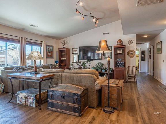 This home is in a highly desirable neighborhood, tucked away in a peaceful location at the end of a cul de sac. Open floor plan and vaulted ceilings meet you as you enter. Everything has been immaculately kept. New Luxury Plank Vinyl throughout. Warm the winter with the cozy flame view pellet stove, and cool the summer with A/C AND a new Evaporative cooler. All matching appliances are included as well as the washer and dryer. Enjoy outdoor entertaining under the covered patio and beautifully landscaped yard. Both back and front yards have been planted with a bounty of colorful blooming plants and flowers. Enjoy smelling the honeysuckle while taking a hot tub soak! Roof and Evaporative cooler are 3 years new. Enjoy hiking, fishing, climbing and biking!