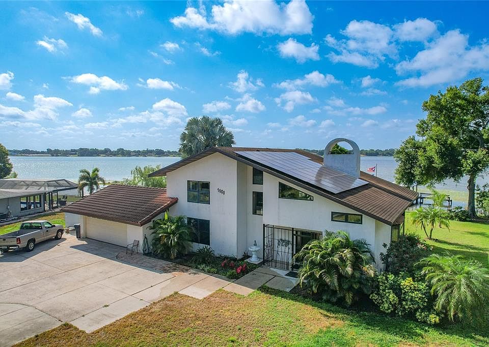 Welcome to this amazing waterfront property on the beautiful Winter Haven Chain of Lakes! Looking for an incredible waterfront home with plenty of privacy? Well look no further. This 2 bedroom and 2 bathroom home sits on over a half-acre on Lake Hartridge and is located at the end of this dead-end road. Walking in the front door you are welcomed by a huge living room with high ceilings, a beautiful fireplace and plenty of room for entertaining. Out back you will find an expansive two story screened in porch with a built-in smoker! Imagine spending your evenings with family and friends, looking out over the water, watching the sunset, and living the dream life. In the mornings you can walk out your private second story screened in balcony and enjoy your morning coffee or just sit back, relax, feel the breeze coming off the lake and watch the sun rise. Upstairs there is a loft area that could be used as an office or an extra bedroom. This property comes with your own private dock with a covered boat lift. Bring your boat and enjoy fishing, waterskiing, or just cruise the chain. And if all that's not enough, this property also has solar! With all these amazing features, you need to go ahead and schedule your private showing today before it's too late!