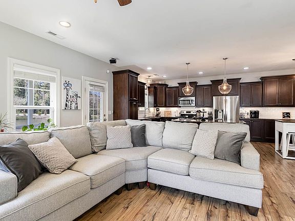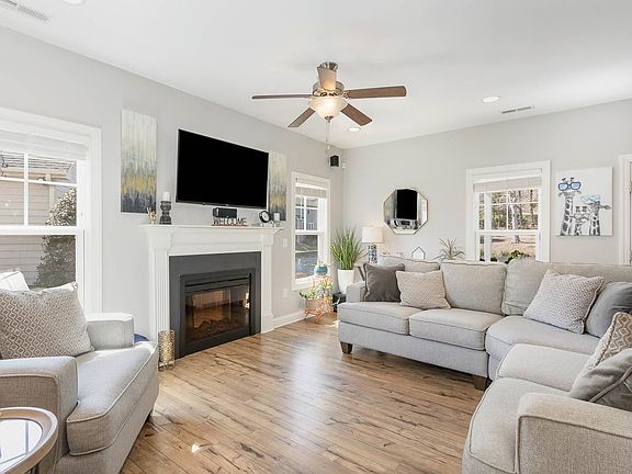 Welcome to Porches Way in West Sanford, minutes from US 1 & 421 bypass, shops, restaurants, plus greenway/park just around the corner. This 3k+ SF home features 4 bedrooms, 2.5 baths, bonus room & loft. Enter from the rocking chair front porch to the foyer where you will find a formal dining room to your right and office/flex room to your left. From there, the living area opens up into a large gourmet kitchen with island, granite countertops, SS appliances AND a view of the water with fountain feature. The kitchen is open to the family room with fireplace. Also convenient to the living area is the covered back porch for grilling, entertaining or enjoying your favorite beverage while relaxing by the water. The downstairs primary suite also has a view of the water, large en-suite bath with double vanity, garden tub and tile shower as well as a spacious walk-in closet. Upstairs features a large loft, 3 more bedrooms, full bath plus a finished bonus room. New carpet installed 5/19, full perimeter underground fence, ADT system, 4 ft high black aluminum fence on rear side of house will be installed late June/early July.