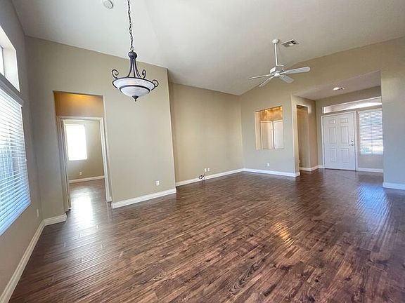 Lovely single story home in Summerlin North community. Spacious front living room with high ceiling and plenty of natural light. Kitchen has granite counters and breakfast bar. Primary bedroom is separate from secondary bedroom. Primary bathroom has double sinks, tub/shower combo, and spacious walk-in closet. Upgraded wood laminate flooring and two-tone paint. Carpet in the 2nd bedroom. Bonus den space can be used for crafts, play, office, and more. Washer and dryer located in closet. Ceiling fans help moderate temperature in the living room and primary bedroom. Desert landscape for easy maintenance. Close to shopping and freeway entrances. As a Summerlin resident, enjoy access to activity registrations, event reservations, community pools, and more. Up to 2 pets under 30 pounds each. Monthly pet rent of $25 and refundable pet deposit of $300 per pet. All residents are enrolled in the Resident Benefits Package (RBP) for $39.95/month which includes liability insurance, credit building to help boost the resident's credit score with timely rent payments, HVAC air filter delivery, move-in concierge service making utility connection and home service setup a breeze during your move-in, our resident rewards program, and much more! Contact us to schedule a showing.