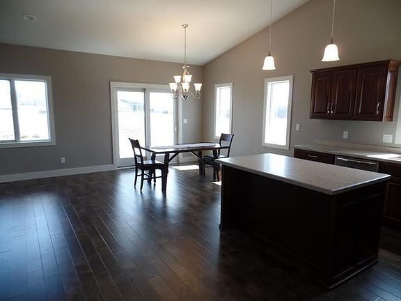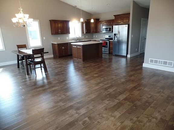 Like new home in SE Mandan close to Ft Lincoln school. Open concept patio home. Beautiful kitchen area with custom cherry cabinets, stainless steel appliances, center island. Large walk-in pantry area next to kitchen. Open dining and living area off of kitchen with vaulted ceilings. Master suite with master bath and large walk in closet. Master bath has dual sinks and custom cherry cabinetry. Guest bedroom on other side of home, next to full bath. Main floor laundry. Two panel white doors and large trim through out the home. Upgraded flooring and LED recessed lighting. 3 stall garage has hot & cold water, 2 floor drains and is wired for a garage heater. Side and back access doors from garage. 2 x 6 construction. Anderson windows. Heating system is a Carrier 95% energy efficient, forced air furnace with a humidifier and central air conditioning. 12 x 12 covered patio in back yard off kitchen. Enjoy sunset out your front covered patio.