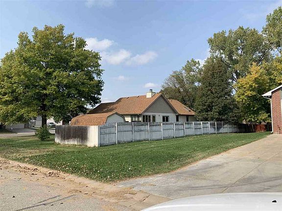 Just waiting for you! Cute ranch style blonde brick home with gingerbread siding. Four total bedrooms and three full baths! Three bedrooms, two full baths on the main level with a two way wood burning fireplace in the living room/ eating area. This home has extra features to delight, including some crown molding, vaulted ceilings and more. Main floor laundry. Extra roomy Family Room in the basement with another bedroom and full bath. Plenty of storage too. Nice sized, freshly painted deck in the back yard with a 8 x 16 shed! Corner lot. Mature trees. Refrigerator, range and microwave stay. Mulvane Schools! No HOA.
