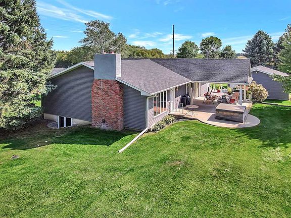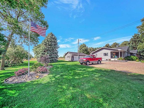 4 Bedroom and 3 bathroom home on 8 acres on the edge of town. Ready to move in with lots of space to make your own. Complete remodel in 2003 and new flooring and paint since then. Eat in kitchen or attached dining room. Abundant custom built kitchen cabinets. Beautiful solid wood doors. Fireplace on main level and in basement. Main floor laundry. Finished basement with 1 bedroom and 1 bath family room with partial heated flooring game room work room and so much storage. Propane gas furnace and Central A C less than 5 years old. Updated electrical breaker box. Huge back yard for kids or entertaining. Enjoy relaxing on the front porch or backyard deck and patio. Mature trees and underground sprinklers. Vinyl siding on house and unattached over sized 2 car garage. Additional 26 x 40 shed in backyard. New roof in 2018 on house garage and shed.