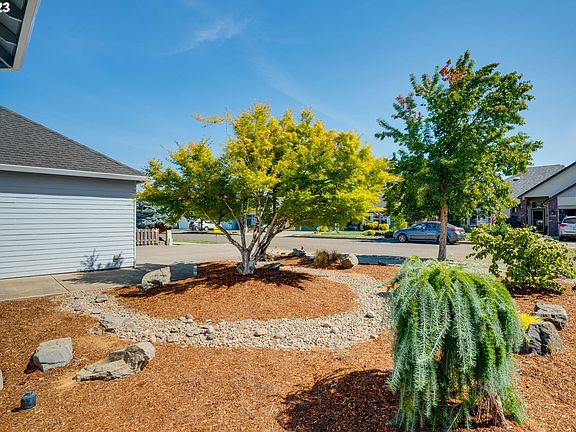 Discover the perfect blend of comfort and convenience in this charming one-level ranch-style home, thoughtfully designed to provide ample indoor and outdoor living space. With 2127 sq ft, this residence offers a spacious layout with 3 bedrooms and 2 bathrooms. The open-plan design with skylights and vaulted ceilings creates a welcoming and inviting atmosphere, while the gas fireplace in the living room adds warmth and coziness to your gatherings. The kitchen is fully equipped with new appliances, and the low-maintenance LVT flooring throughout the house makes for easy cleaning and durability. The new air conditioning system ensures a comfortable climate all year round. Unwind in the luxurious primary bedroom featuring a private ensuite with double sinks, a soaking tub, a shower, and a generously sized walk-in closet. Updated countertops grace all bathrooms, and thoughtful closet organizers enhance storage efficiency. The house features a bright loft with ample space, perfect for a home office or an exercise/playroom. Step outside into your backyard oasis, complete with raised beds for gardening. The property backs onto a walking and biking trail, for you to enjoy. With a 2-car garage, you'll have plenty of room for vehicles, storage, and a workshop area. RV parking pad adds to the practicality. Conveniently located in Canby, you'll find easy access to local amenities, schools, and parks.