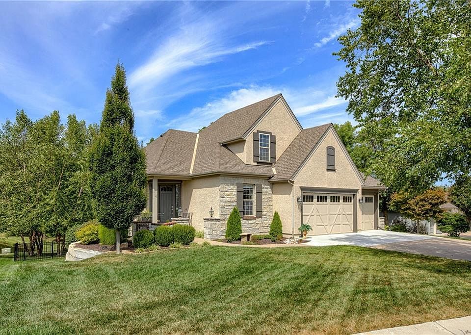 Now Active Again — New Roof Underway! Elegant 5-Bedroom Home with Finished Walkout Basement, and Pond Views! Discover the perfect blend of elegance and comfort in this exceptionally well-kept home that truly shows like a model! With 5 bedrooms, 3.5 baths, and over 4,000 sq. ft., plus a spacious 3-car garage, this home offers room for everyone. Step inside to a light-filled, open floor plan designed for everyday living and entertaining. The modern kitchen boasts granite countertops, an oversized island, stainless steel appliances, walk-in pantry, and custom built-ins—all flowing seamlessly into the great room and dining area. The great room impresses with a granite tile fireplace, walls of windows, and access to the deck overlooking peaceful surroundings. The main-floor primary suite is a true retreat, featuring a see-through fireplace into the spa-like bath with jetted tub, walk-in shower, double vanity, and TWO walk-in closets. Conveniently located nearby are the laundry room and a versatile office with double French doors—easily converted into an additional bedroom or formal dining space. Upstairs, you’ll find a cozy loft, two large bedrooms with walk-in closets, a full bath, and attic storage. The finished walk-out basement offers an Entertainer’s Dream with a spacious rec room, wet bar with wine storage and beverage refrigerator, bonus game room, two more bedrooms, and a full bath. The WOW effect continues when you step outside to enjoy the tranquil, pavered patio with built-in stone fireplace overlooking a stocked pond—perfect for gatherings year-round. Located in the desirable Woodland Glen community with a pool, this home is just minutes from Lee’s Summit’s shopping, dining, and top-rated schools. This lovely home is move-in ready. Why wait for new construction when you can enjoy double the square footage and high-end finishes at an incredible value?