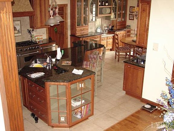 Custom built and doubled in space with addition Gourmet Kitchen, 10' ceilings, open layout on main level great for entertaining, outside living rm with TV, Majority of structure built in 2003, entire house on generator. 2 acre lake for recreation, large creek and Falling River on property. Open land and long winding drive to hilltop setting. Attached 3 car garage