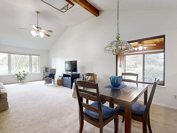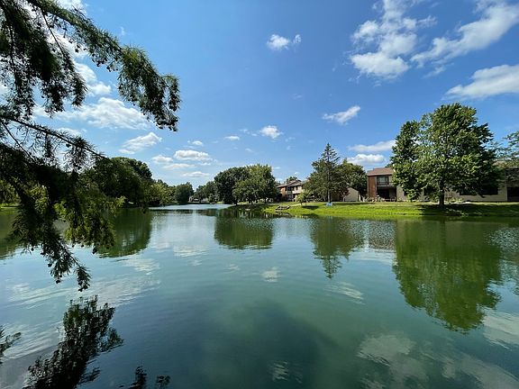 Easy living awaits in this one story zero lot sitting back on a cul-de-sac with multiple water views just off Devonshire Dr in Champaign! A beautifully landscaped path leads inside where you'll discover a spacious living room highlighted by vaulted ceilings and grand fireplace. The galley kitchen open to a breakfast nook and incredible sunroom with spectacular views. The primary bedrooms offers another water view plus a private half bath. A second bedroom and full bath complete the tour. Enjoy the gorgeous sunshine and peaceful water out on the back patio!