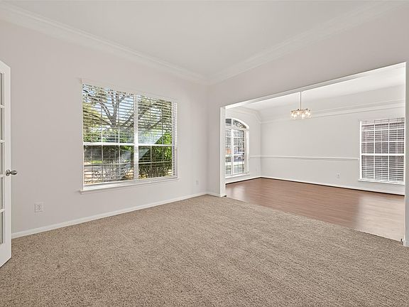 Welcome to 1608 Spring Glen Dr — a beautifully upgraded home in a peaceful and well-kept community. Enjoy the covered patio with flagstone flooring, ideal for relaxing or entertaining guests. The open-concept layout features four-sided brick construction, high ceilings, a covered front porch, and ceramic tile throughout. Refined finishes include crown and chair rail molding, stylish blinds, and updated light fixtures. Arched entries add timeless charm. The family room showcases a stone fireplace and large windows overlooking the scenic backyard. The chef’s kitchen boasts quartz countertops, tall cabinets, stainless steel appliances, and a double sink. The spacious primary suite offers abundant natural light, high ceilings, and a spa-like bath with a jetted tub, walk-in shower, and ample storage. Additional highlights include a formal dining room, a private study with French doors, and a detached garage. Style, comfort, and thoughtful upgrades await- this home is ready to impress.