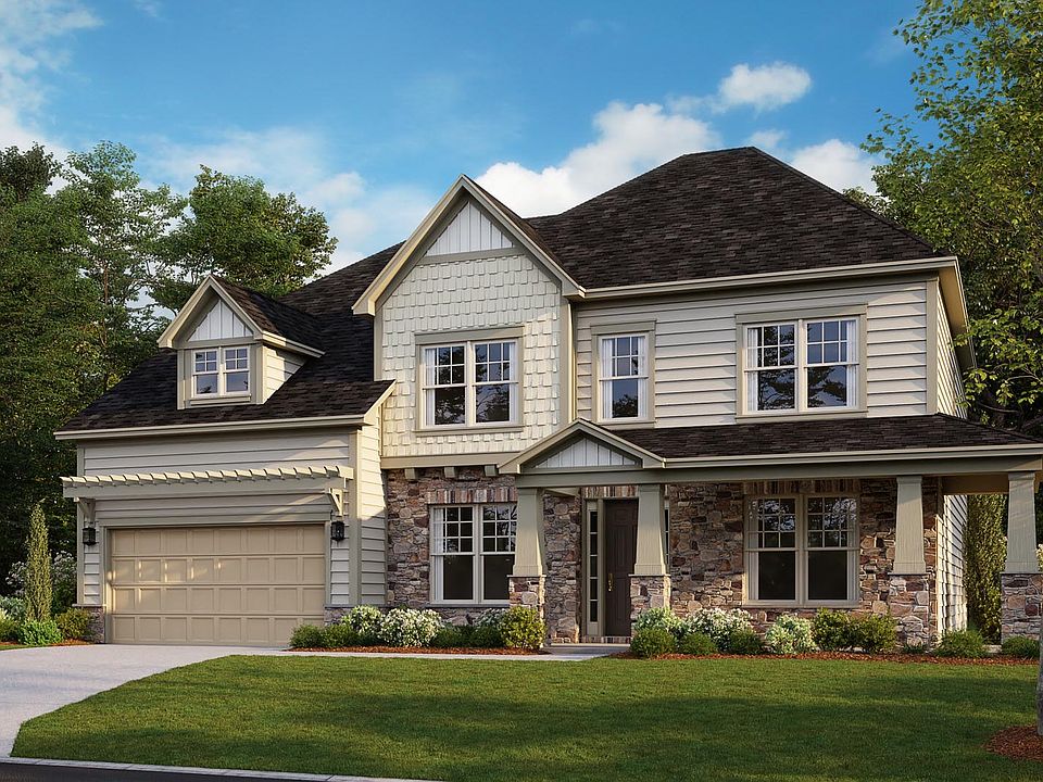 Enter this welcoming home to a heavily molded foyer and 8' interior doors a study and formal dining room. The open kitchen has plenty of counter space featuring warm espresso cabinets,granite, stainless gourmet kitchen with GE appliances, island and crisp white subway tile backsplash. Kitchen and breakfast opens to the family room which features tons of natural light and a fireplace. The guest suite on the main floor is perfect for in-laws or guests visiting from out of town. The beautiful owners suite features a tray ceiling, enlarged walk in shower + a bathtub and luxurious walk in closet. 3 bedrooms, a bonus room and 2 full baths can also be found upstairs.